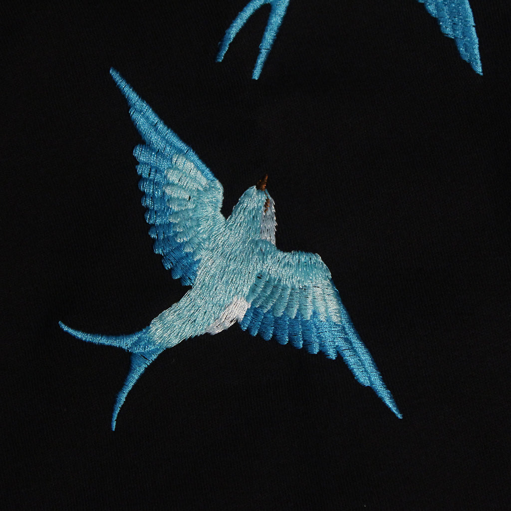Featuring embroidered bluebirds in motion and a textured “FLY TO END” patch, it captures the journey between struggle and freedom — a statement piece that blends emotion and edge. The oversized fit makes it ideal for daily wear, art-inspired street looks, or creative drops.