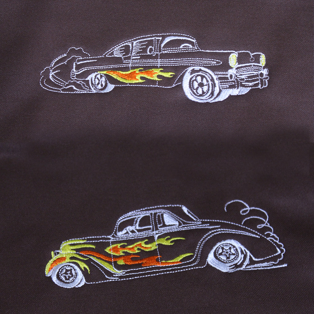 The back features bold embroidered hot rod car art with fiery detailing, while the chest reads “Old Man Machine” — a nod to vintage legends who still rule the road. The oversized fit keeps it relaxed, bold, and made for movement.